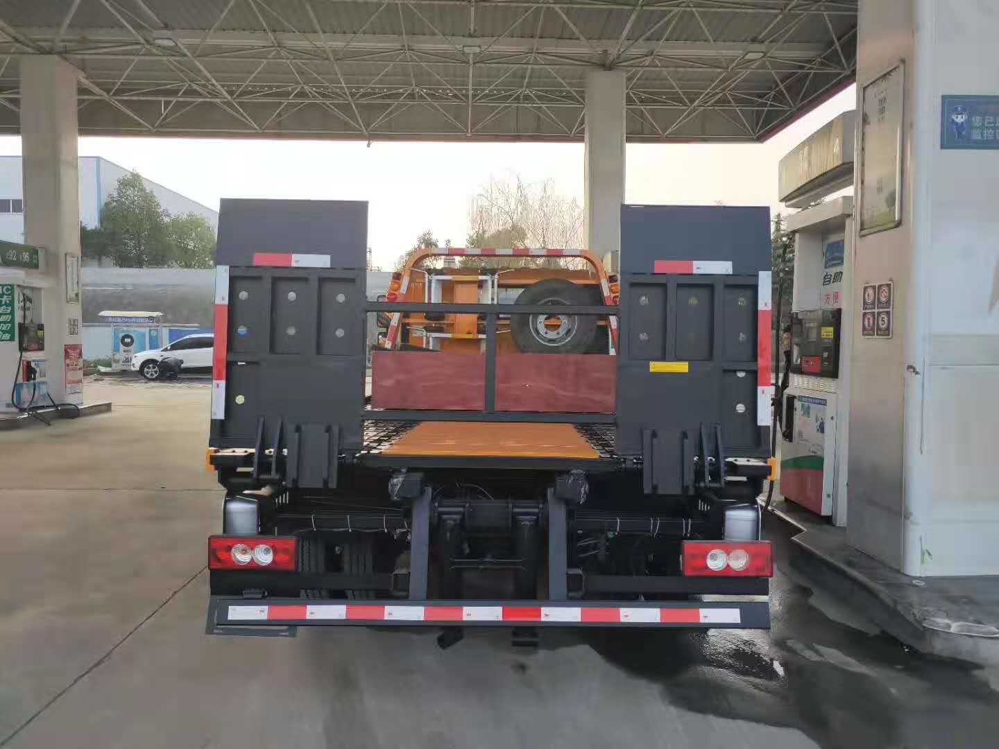 上裝配置:平板采用3P2A沖壓鋼板,具有更加出眾的平衡性,平板長4.2米,寬2.3米。背3噸,拖3噸。多路閥平衡閥采用意大利原裝(海德)進口;液壓缸佛山(海戰(zhàn)力)采用德國技術(shù),雙層鋼絲液壓膠管,全進口密封圈。分體模壓拼焊面板,耐磨、防滑抗阻力強。雙側(cè)聯(lián)動操作系統(tǒng),后工作燈2只,一個4噸液壓絞盤(25米鋼絲繩)一個洗手箱,2個小車,L型抱胎架1對,4根捆綁帶,后隱藏液壓伸縮式尾板,或尾部翻轉(zhuǎn)(可定做中間加長0.5米),可伸出長度為1.1米,應對較長車型的SUV和越野車型。上裝所有液壓元件均采用進口部件,可選裝國產(chǎn)件。